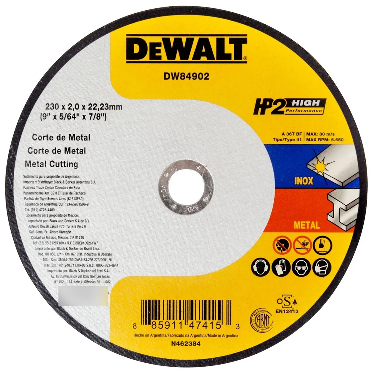 DISCO DE CORTE PARA AMOLADORA DE 9" DEWALT DW84902